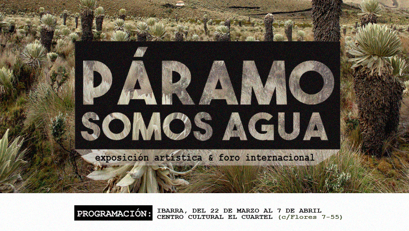 #PáramoSomosAgua es la idea de la artista y activista Mishell Naranjo que se materializa en un programa cultural de tres días desarrollado junto a TOLA Arte y Cultura y OMASNE para celebrar el día mundial del agua en la ciudad de Ibarra. Un programa que se realizó con la intención de visibilizar la importancia de los ecosistemas del páramo como parte fundamental para la construcción del campo y la ciudad de las regiones andinas. La programación integraba un foro internacional, una proyección cinematográfica + conversatorio, y una exposición artística en una de las salas del Centro Cultural El Cuartel. Todos los procesos de producción, comunicación, comisariado, curadoría y montaje fueron realizados por Francisco Palacios, Mishell Naranjo, Eduardo Vaca y Paúl Palacios, miembros de TOLA Arte y Cultura.