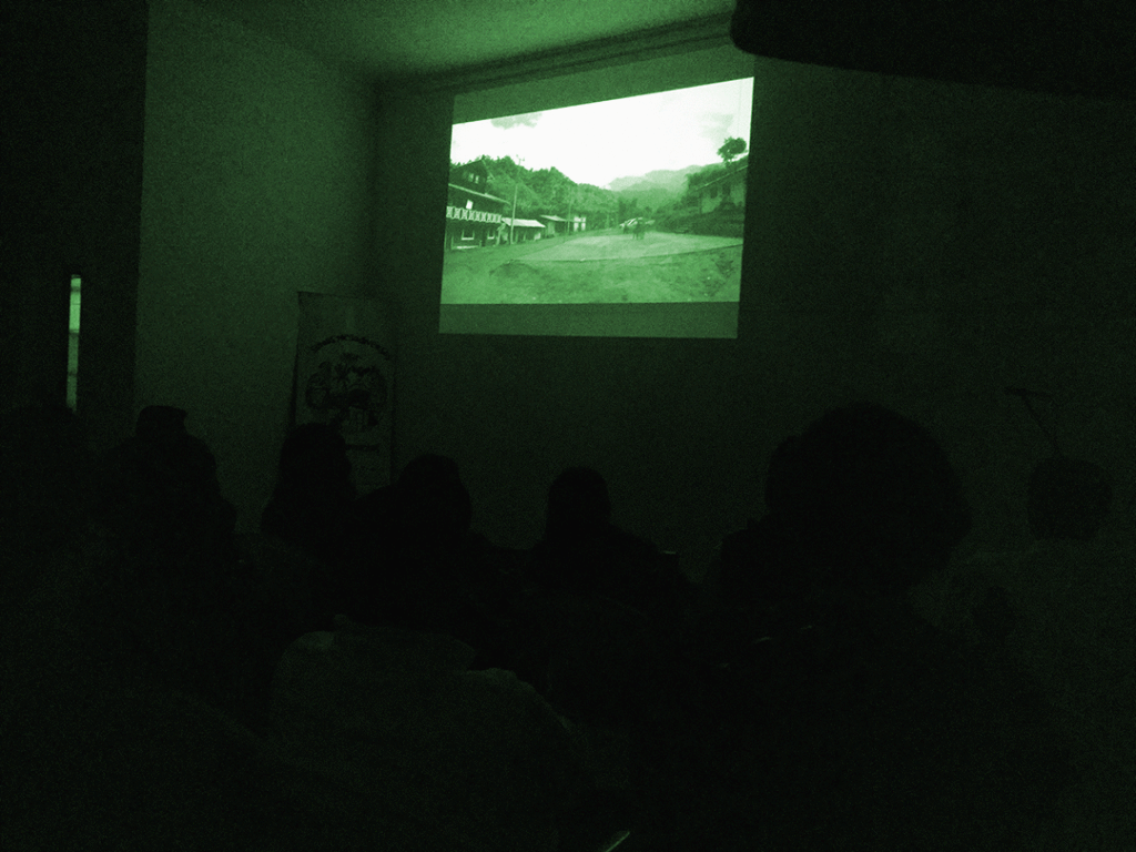 El segundo día tuvo lugar la proyección de dos obras cinematográficas que complementaban el foro sucedido el día anterior. “Hugo Territorio Rebelde”, fue la primera proyección de la tarde que se sintió como una bofetada en lxs  asistentes buscando su reacción. Del director quiteño Pocho Álvarez, este increíble documental nos cuenta la resistencia del territorio de Intag ante la ocupación de CODELCO, su afectación en la cotidianeidad de la gente, en el color del agua de sus ríos, cascadas, bosques y fauna, y en los diálogos de las comunidades. “Hija de la Laguna” del director Ernesto Cabellos fue la segunda obra que se proyectó durante este evento. Esta última, es un documental que nos muestra la mirada de la población peruana de Cajamarca y su conexión espiritual con la laguna, quienes liderados por un personaje femenino, ejercen su resistencia ante el desalojo provocado por la ocupación minera.