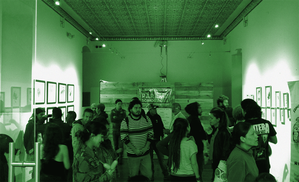 Con estos dos eventos precedentes, el sábado 24 de marzo se realizó la inauguración de la exposición artística que reunió la mirada de cinco artistas: Daniela Santacruz, Michelle Rubio, Juan Carlos Gonzáles, Braulio Gutiérrez y Eduardo Obando. Quienes lograron captar la atención de lxs asistentes a través de diferentes obras en formato fotografía, dibujo, pintura, collage e instalación visual y sonora. La muestra estuvo expuesta por un mes y tuvo la visita de mucha gente de museos y colectivos que realizan acciones artísticas y medioambientales.