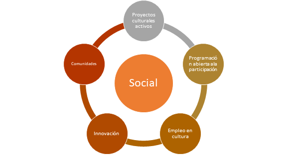 Social: como plataforma para la inversión social y la generación de empleo y sostenibilidad de la cadena de valor del sector cultural. Para democratizar el acceso a los bienes y servicios culturales, al conocimiento y a la participación de la ciudadanía en la vida cultural.