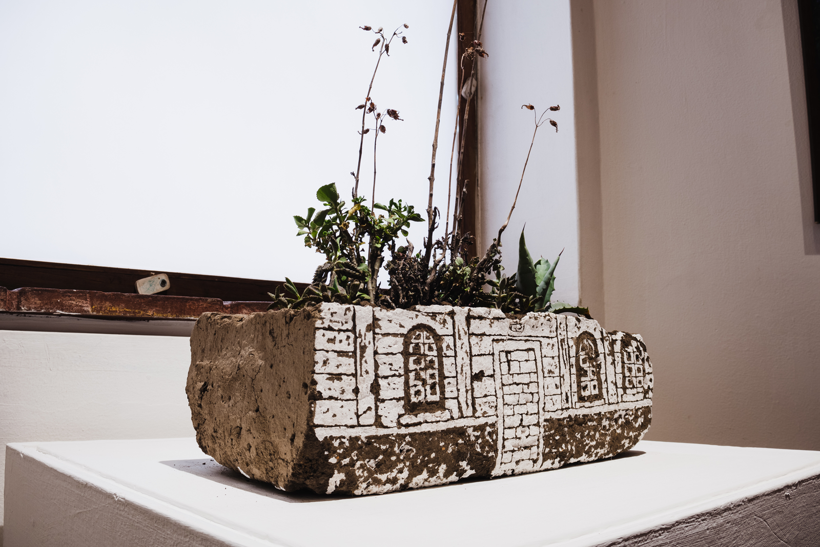 La obra es creada dentro de un proceso de catalogación de bienes patrimoniales inhabitados y abandonados en los límites del centro histórico de Ibarra. El artista muestra su proceso apegado a resignificar y transformar los materiales como el adobe, la cal, y las plantas conocidas como yerba mala que se apoderan de las construcciones abandonadas. En esta serie de esculturas acerco a las personas a mirar desde otra perspectiva estos espacios ubicados en el casco histórico, invitando a pensar en el tiempo, el habitar y el abandono. A preguntarnos qué somos.